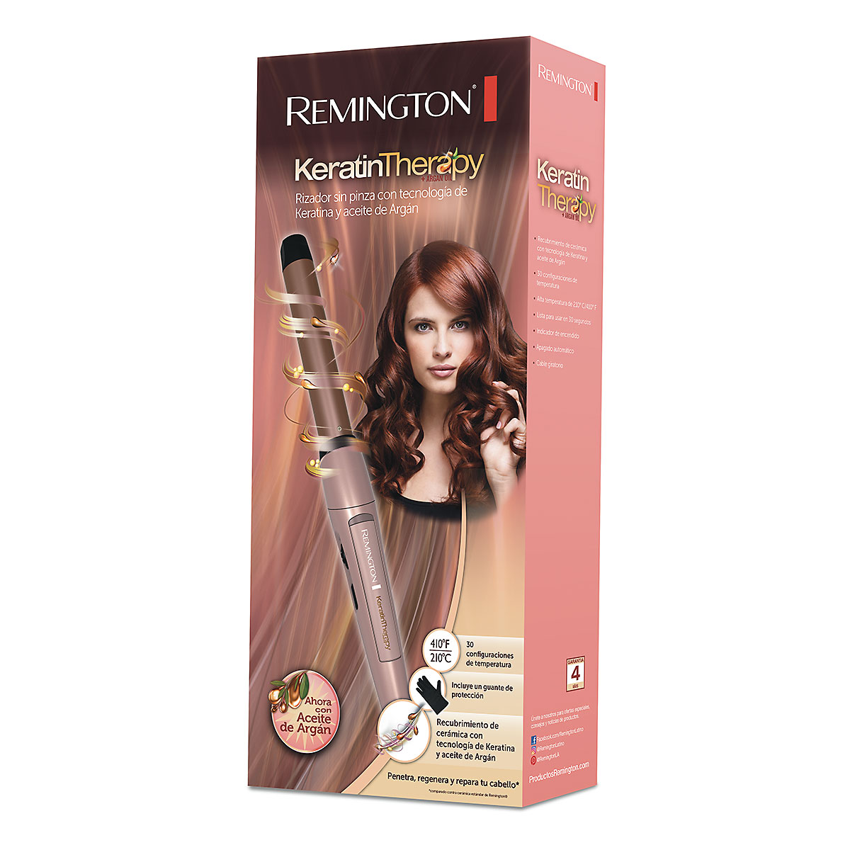 El barril con revestimiento de cerámica avanzada con Keratina y aceite de aceite de argán transfiere estos ingredientes a tu cabello mientras lo moldeas y así consigue unos rizos elásticos y de aspecto sano.