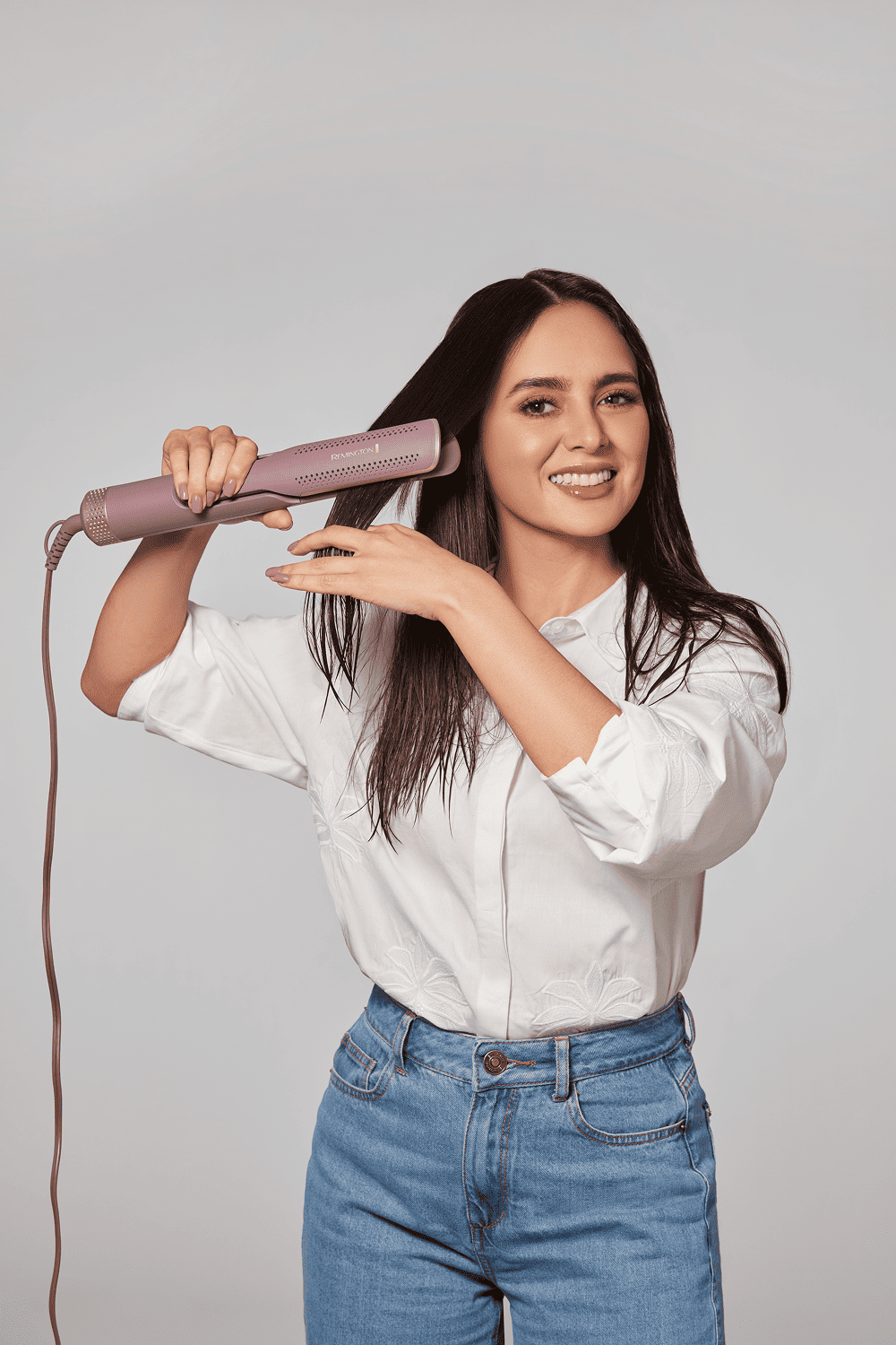 El Estilizador de Aire AIRvive 2 en 1 ofrece mucho más que un solo estilo. Al usar el modo de acabado, puedes experimentar con rizos con volumen, puntas definidas u ondas con control y facilidad, gracias a su cubierta curva que se enfría activamente mediante el flujo de aire.