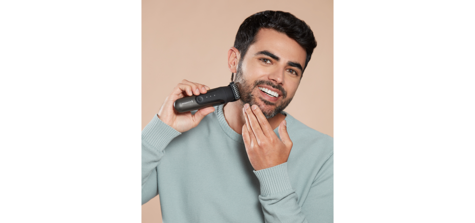 • Recortador facial vertical con un cabezal de corte 4 veces mayor^^ con el que capturar el vello de zonas delicadas como la nariz y las orejas y recortar los pelos más largos de las cejas.