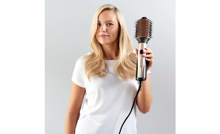 3 accesorios versátiles: incluye un concentrador de secado para preparar el cabello antes del peinado, un cepillo ovalado cerámico de 70 mm para suavizar y dar volumen a la raíz, y un cepillo redondo cerámico de 25 mm para crear rizos pequeños, movimientos divertidos y dar forma al flequillo. Ambos cepillos cuentan con cerdas térmicas mixtas, que mejoran el control y la precisión en cada estilo.