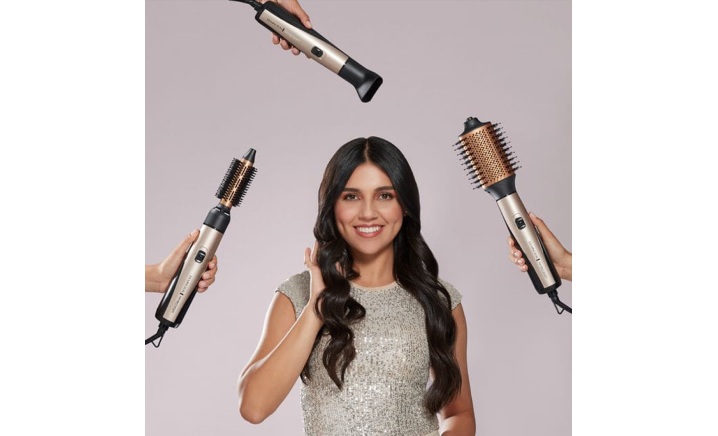 3 accesorios versátiles: incluye un concentrador de secado para preparar el cabello antes del peinado, un cepillo ovalado cerámico de 70 mm para suavizar y dar volumen a la raíz, y un cepillo redondo cerámico de 25 mm para crear rizos pequeños, movimientos divertidos y dar forma al flequillo. Ambos cepillos cuentan con cerdas térmicas mixtas, que mejoran el control y la precisión en cada estilo.