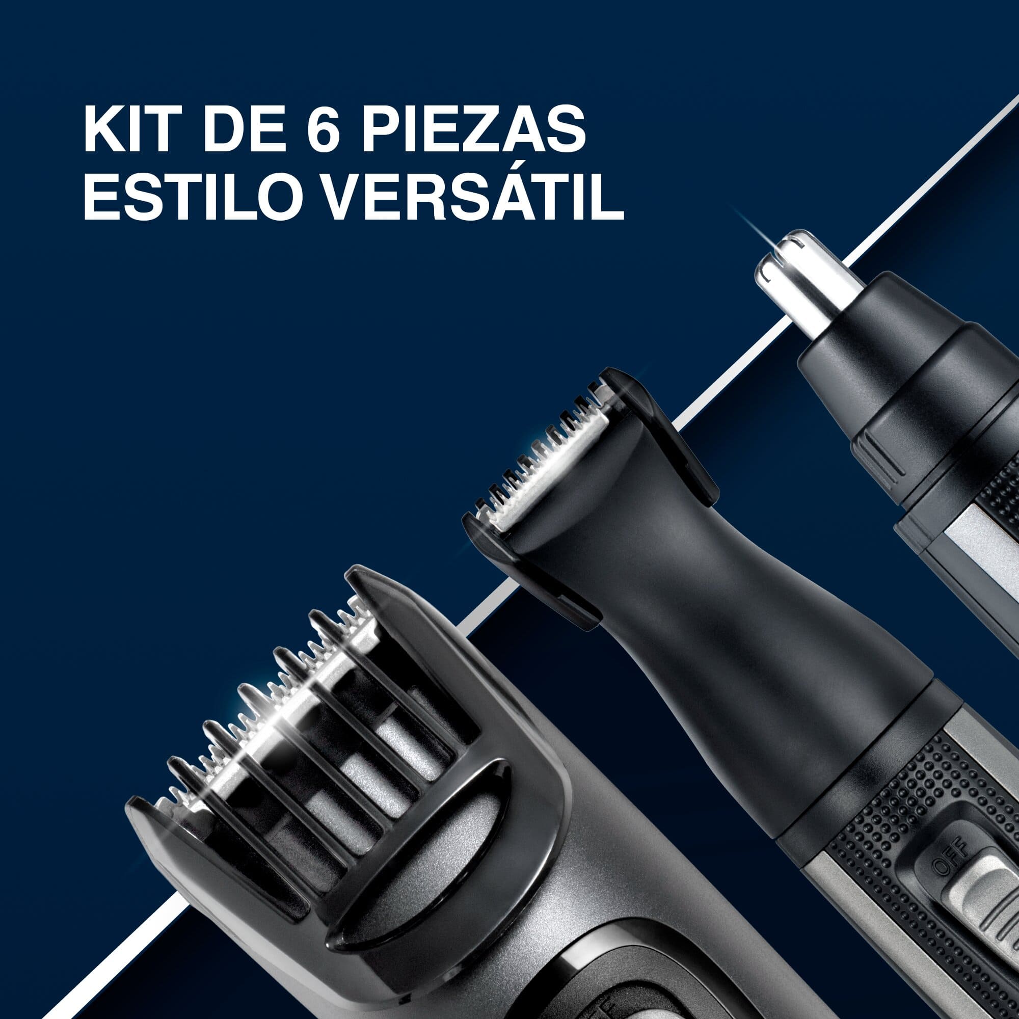 Te presentamos el nuevo Kit todo en 1, The Works, de Remington que cuenta con accesorios para barba, nariz y oídos: un recortador de barba con peine de diversas longitudes, un detallador de precisión y un recortador rotativo para nariz y oídos.