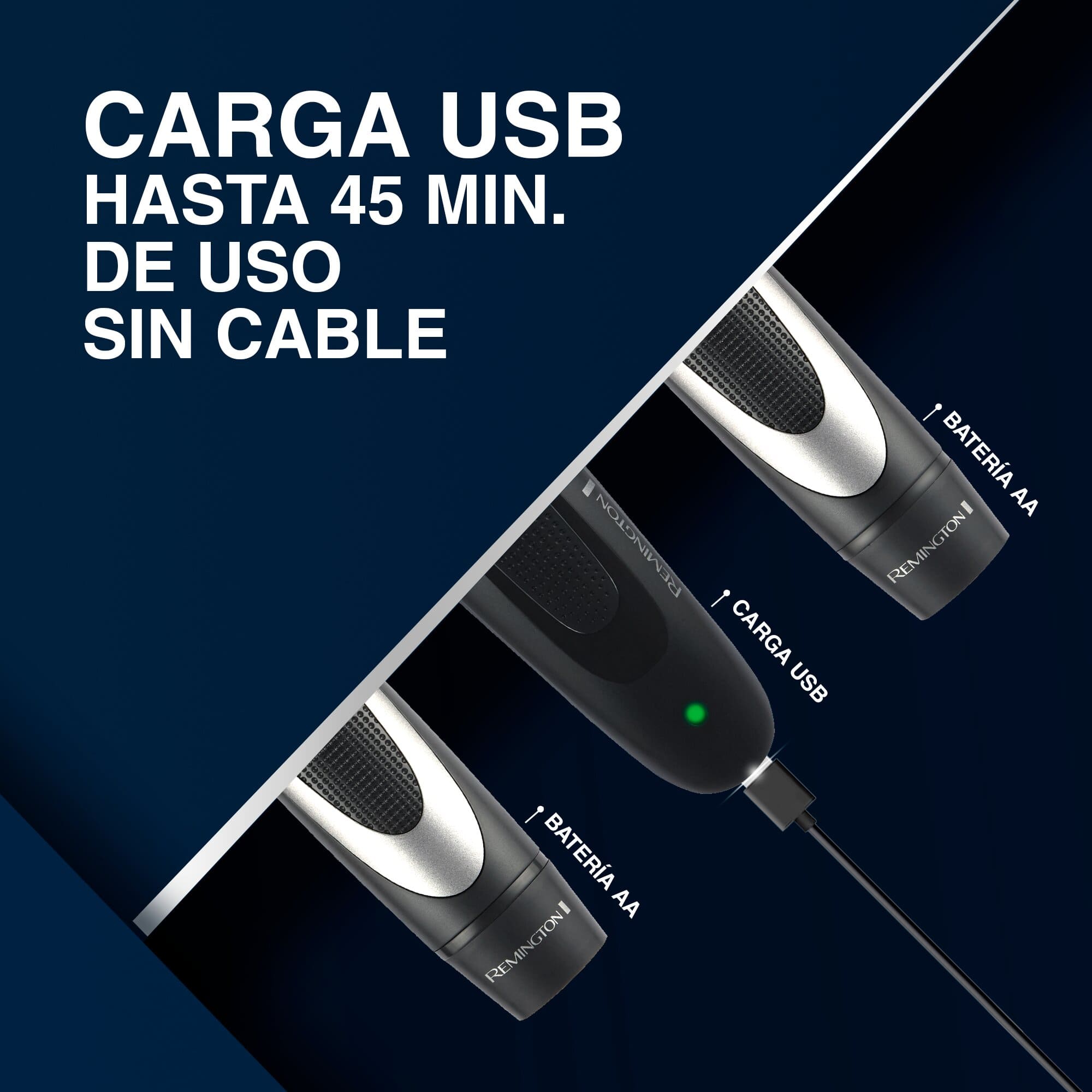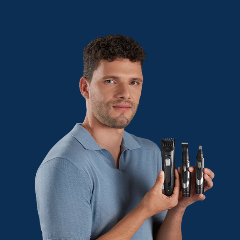 Te presentamos el nuevo Kit todo en 1, The Works, de Remington que cuenta con accesorios para barba, nariz y oídos: un recortador de barba con peine de diversas longitudes, un detallador de precisión y un recortador rotativo para nariz y oídos.