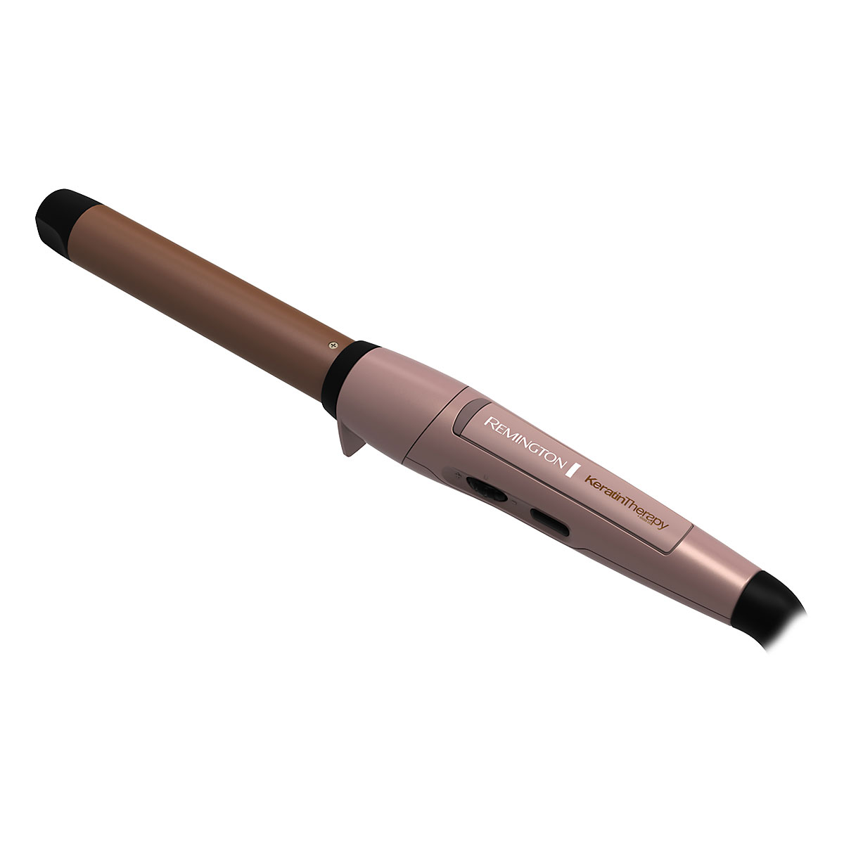 El rizador de cabello Keratin Therapy crea unos rizos impresionantes con el barril 25 mm. La forma del barril está pensada para moldear el cabello desde la raíz hasta las puntas e incluye una tecnología de agarre mejorada que evita que los mechones se deslicen por el barril, así puedes estilizar sin complicaciones.
